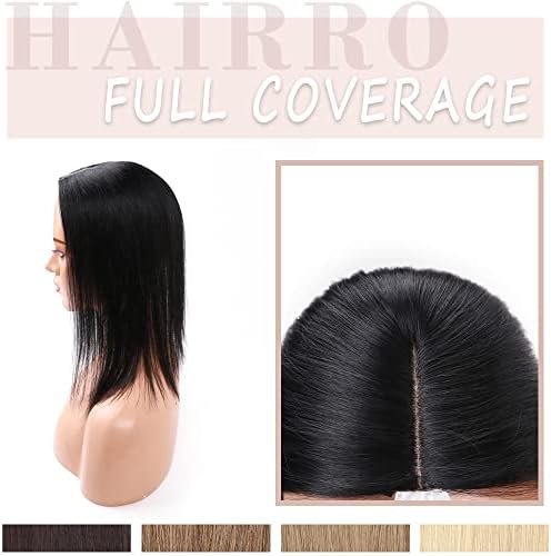 Amazon Com Hairro 18 Inch Silk Base Clip In Human Hair Topper For Women 1 Jet Black Clip On Toupee Extensions With 4 Clips Filler Hairpiece Beauty Personal Care