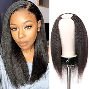 U Part Wig Kinky Straight 2x4 Centre Part Human Hair Wig 150 Density 10a Grade Brazilian Hair Glueless Half Wig Natural Colour 18 Inch Yaki Straight Amazon De Beauty